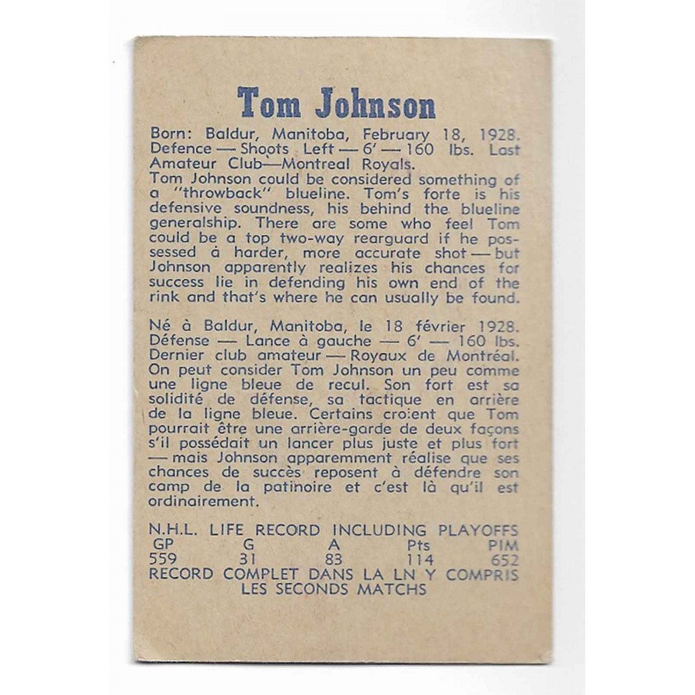 1957-58 Parkhurst Canadiens de Montréal # 6 Tom Johnson