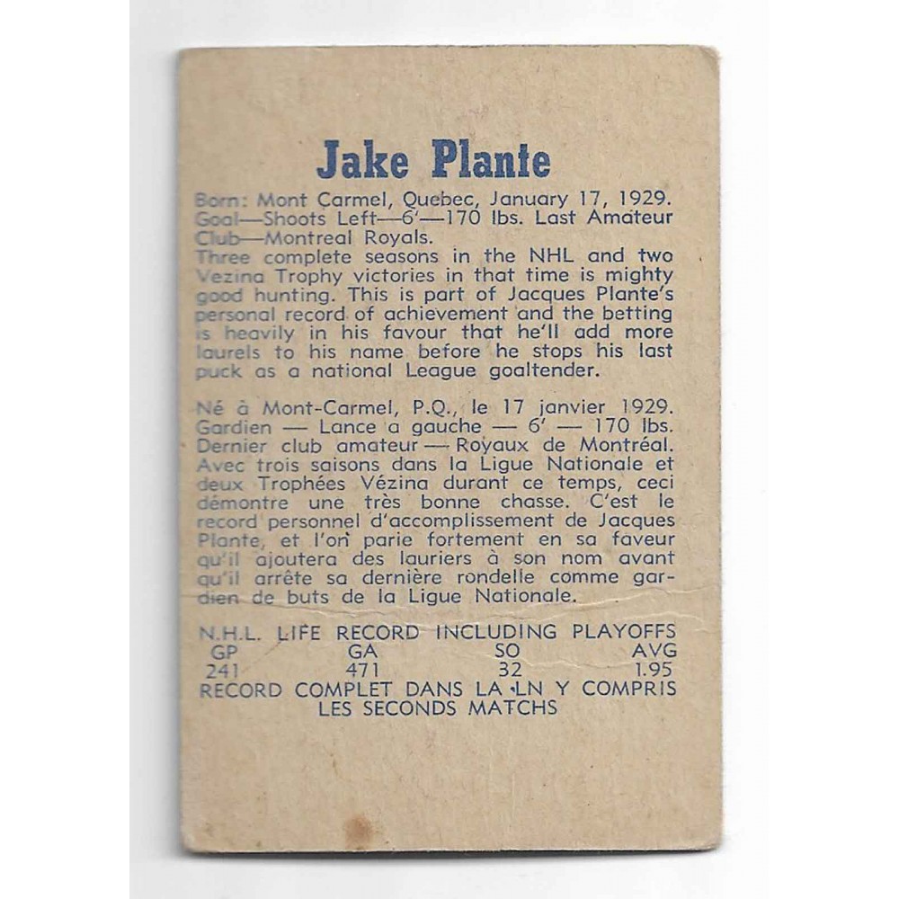 1957-58 Parkhurst Canadiens de Montréal # 15 Jacques Plante