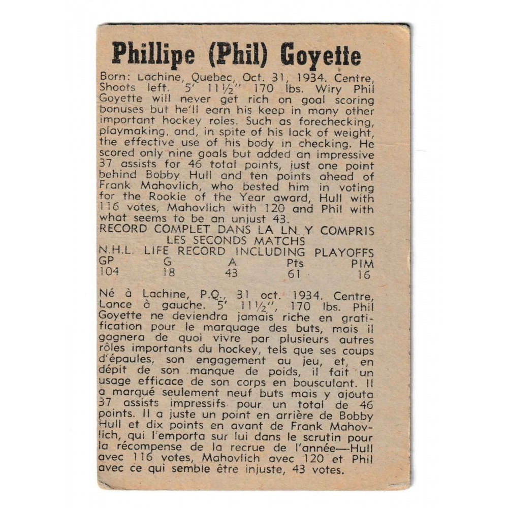1958-59 Parkhurst # 47 Phil Goyette