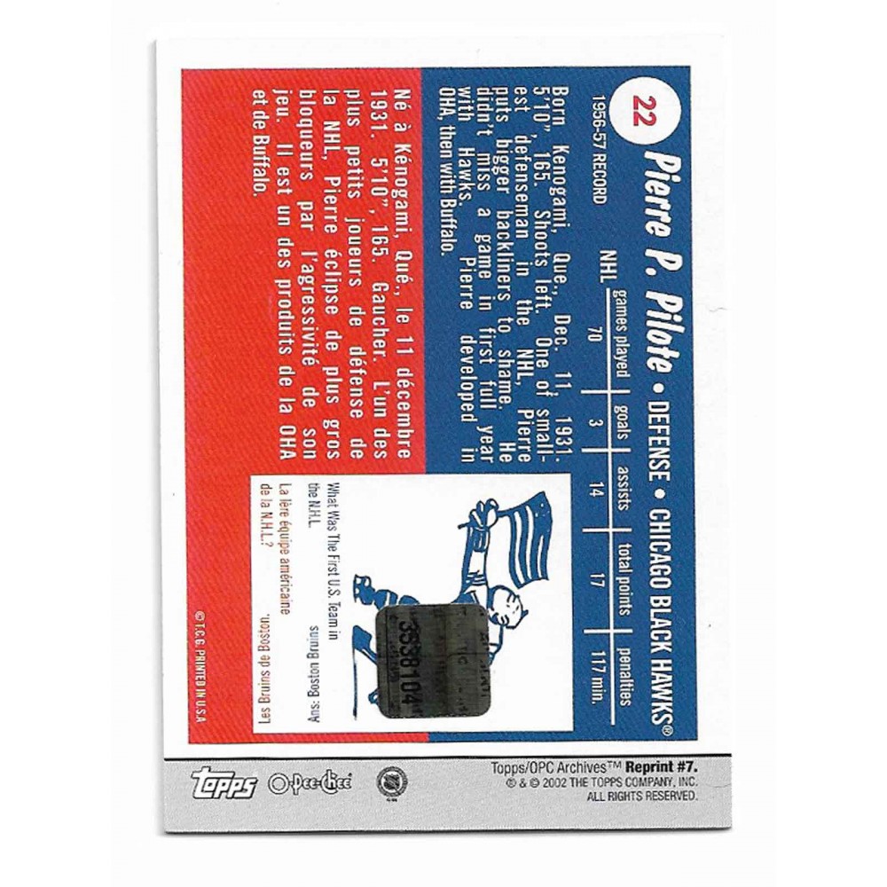 Rookie Reprint # 7 Pierre Pilote