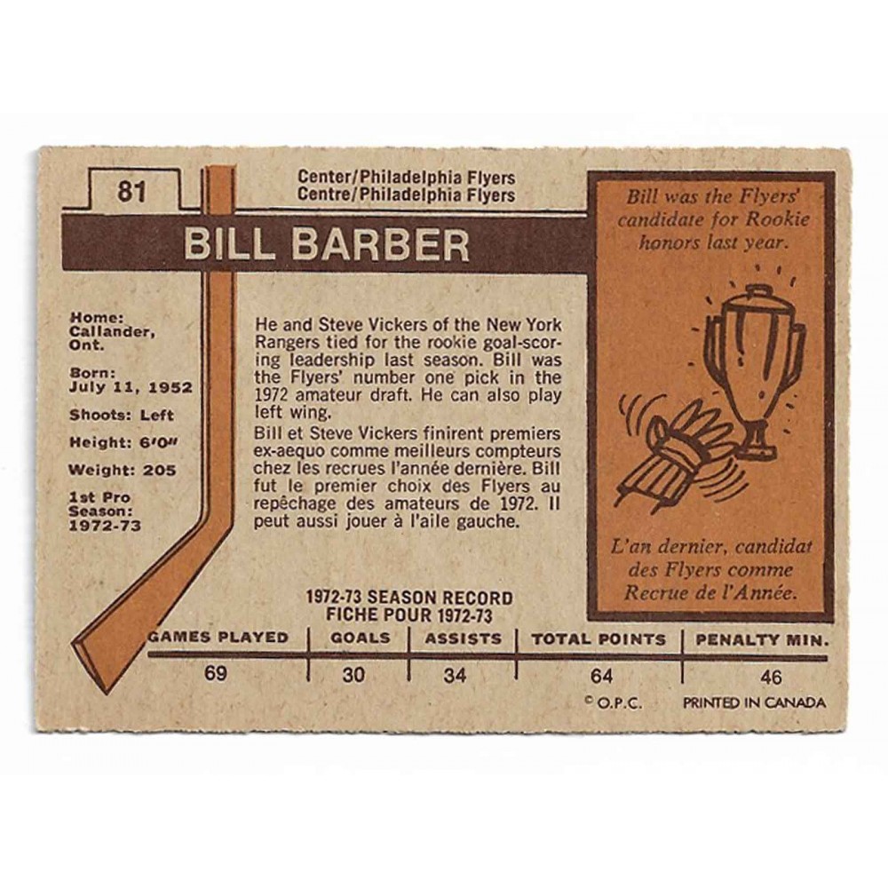 1973-74 O-Pee-Chee # 81 Bill Barber RC