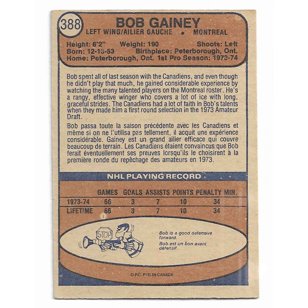 1974-75 O-Pee-Chee # 388 Bob Gainey RC