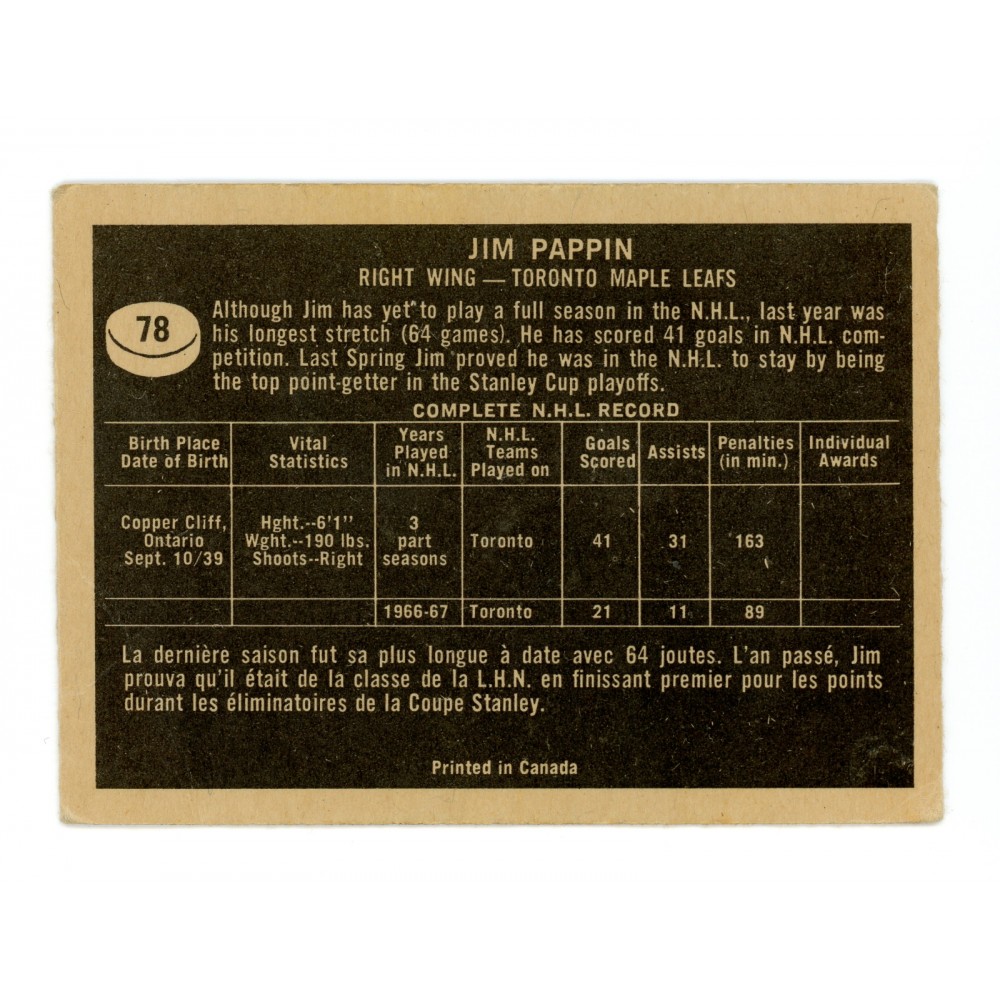 1967-68 Topps # 78 Jim Pappin