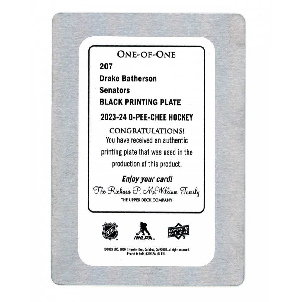 2023-24 O-Pee-Chee Retro Printing Plates Black # 207 Drake Batherson 1/1