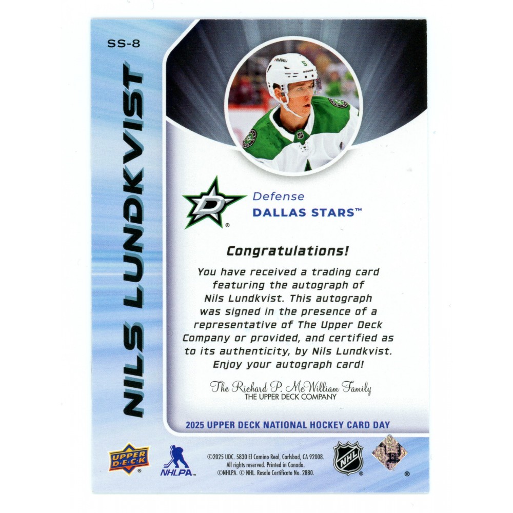 2024-25 Upper Deck National Card Day Autographs # SS-8 Nils Lundkvist