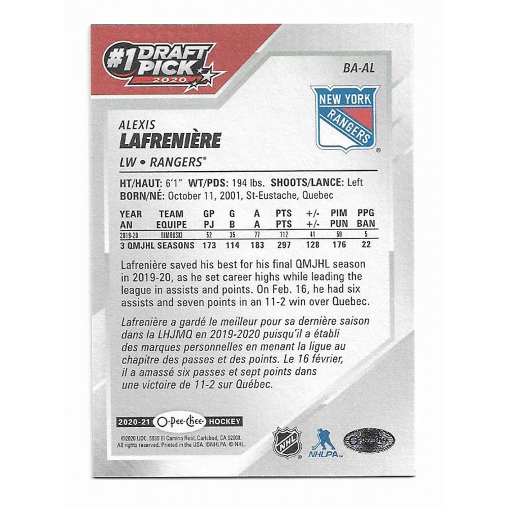 2020-21 O-Pee-Chee # 1 Draft Pick Bounty 2020 Alexis Lafreniere