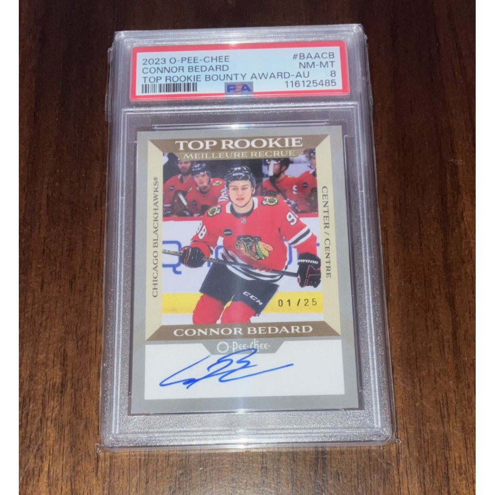 2023-24 O-Pee-Chee Bounty Top Rookie Connor Bedard Autograph # 1/25 PSA 8